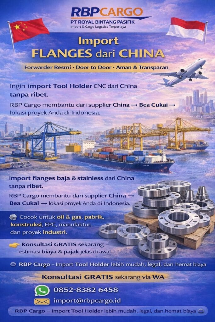 China menjadi salah satu produsen flanges terbesar di dunia, menawarkan harga kompetitif, kapasitas produksi besar, dan standar internasional (ANSI, JIS, DIN). Namun, proses import flanges dari China memerlukan forwarder berpengalaman agar tidak terkendala Bea Cukai, salah HS Code, atau biaya membengkak.