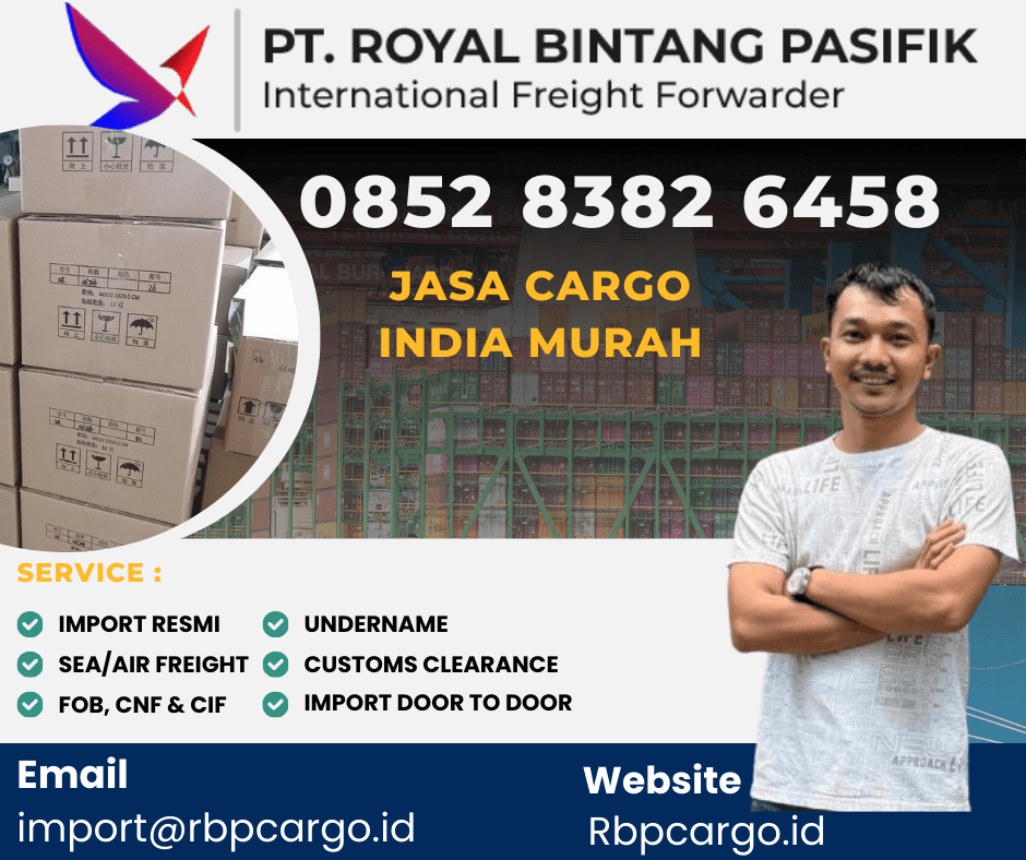PT Royal Bintang Pasifik (RBP Cargo) hadir sebagai solusi jasa cargo India murah yang melayani pengiriman barang dengan proses yang aman, cepat, dan legal. Baik untuk importir pemula maupun perusahaan besar, kami menyediakan layanan logistik menyeluruh sesuai regulasi bea cukai Indonesia.