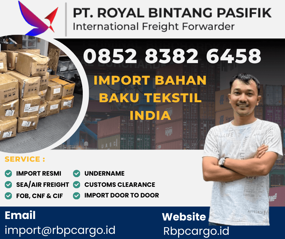 PT. Royal Bintang Pasifik (RBP Cargo) hadir untuk membantu proses import bahan baku tekstil dari India ke Indonesia dengan aman, legal, dan efisien.