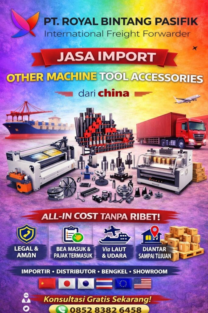 Melalui PT Royal Bintang Pasifik (RBP Cargo), proses jasa import Other Machine Tool Accessories dari China dapat dilakukan dengan mudah, aman, dan legal. Kami melayani sistem door to door mulai dari supplier China hingga barang tiba di workshop, gudang, atau pabrik Anda di Indonesia.